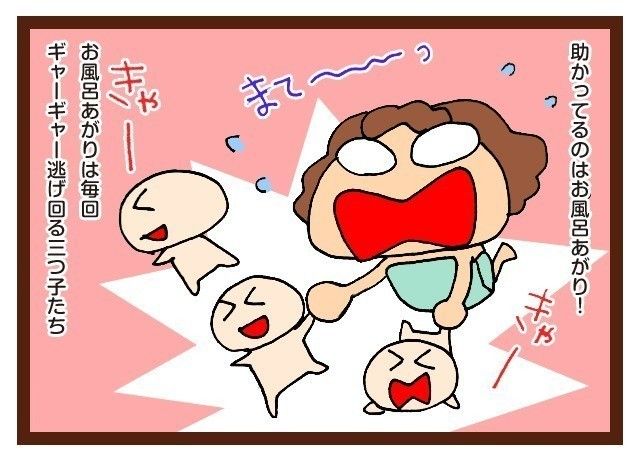 お風呂あがりは、番組のチョイスもポイントなのです。その時、3人が飽きずに興味を持って見ていてもらえる番組は何か…を見極めなければいけません☆