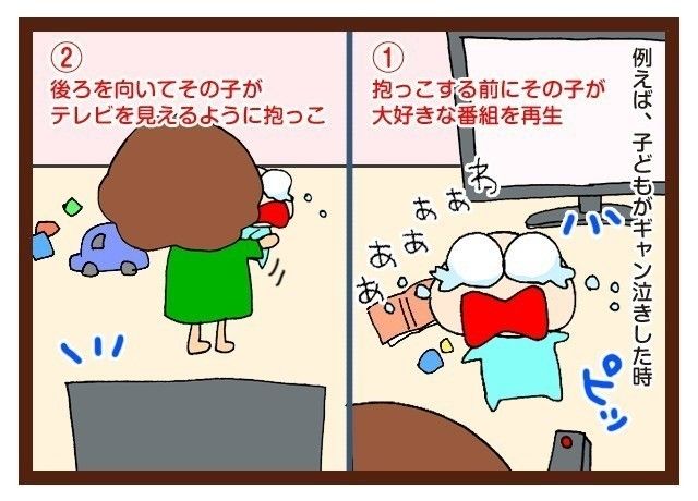 子どもがギャン泣きしたとき、家事忙しくてやること山積みだしあとの2人もグズグズするし、1秒でも早く泣き止ませたーい!!抱っこの前にその子の好きな番組をポチッ!