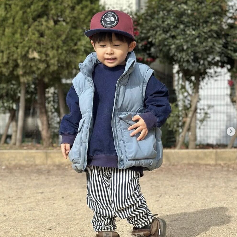 mkbaby_harupiさんは、こちらのアウターを購入。なんとこちらは袖が着脱できるタイプで、今回は袖をはずしてベストとして着てみたんだとか。ボリューミーでめっちゃいい!とお気に入りの様子。くすんだブルーも形も可愛らしいですね。