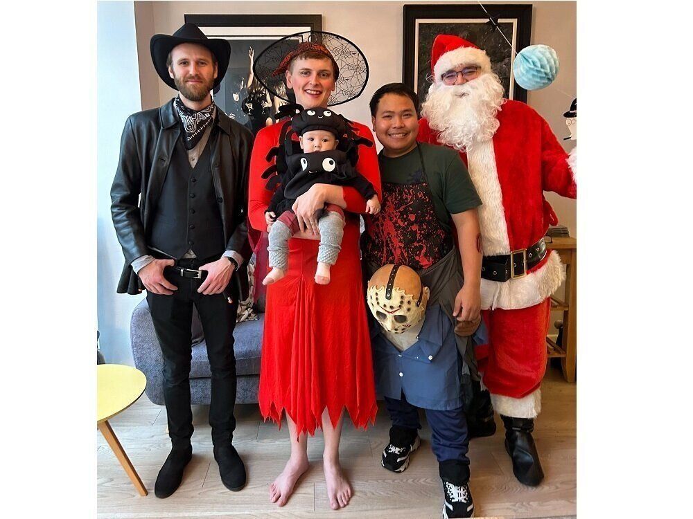 るるちゃん初めてのハロウィンは、スパイダーのコスチュームで挑みました!ルイスのお友だちとの記念写真!家族と友だちみんなで手料理を囲んでゲームをしたりと楽しくパーティーしました!