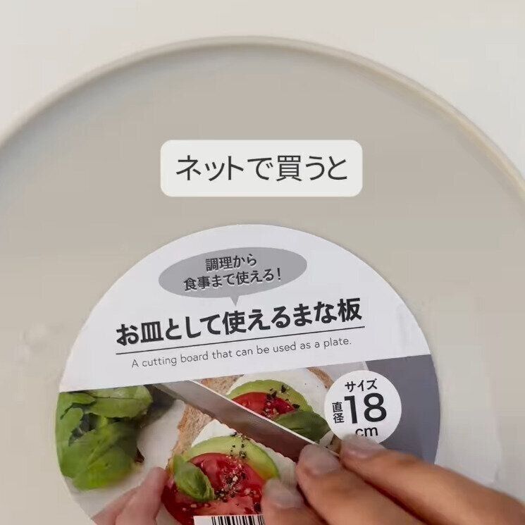 こちらはshuri_lifehackさんがセリアで購入した「お皿として使えるまな板(18cm)」。フチが一部だけ高くなっていて、ドレッシングのような液体もこぼれにくいのだそう。フチが低い部分は包丁の刃が引っかからず、まな板としても使いやすいのだとか。洗い物が減って時短も叶い、これで110円はコスパ最高とのこと◎