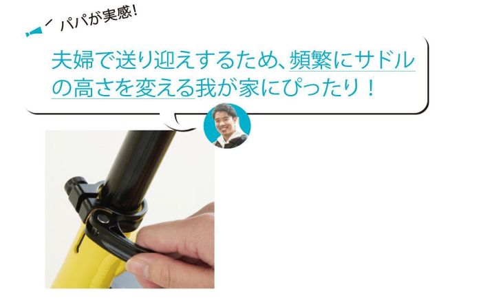 おすすめポイント2 サドルの上げ下げが簡単だから夫婦で共用しやすい