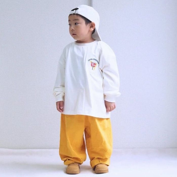 こちらは、「PAIRMANON STREET (ペアマノンストリート)」のワイドパンツ。イエロー系は春にもぴったりのカラーなので、季節を先取りしたい人にもおすすめです。特に、kaho_kochibifuku148さんのようにホワイトアイテムと合わせると、とてもフレッシュな印象に♪ ワイドパンツのなかでも特に太めのシルエットなので、ストリートコーデが好きなキッズに、ぜひ取り入れてほしいアイテムです!