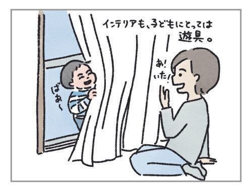 ちょうど同じくらいの頃、カーテンで隠れたり、いないいないばあをする遊びも始めました。これ、本当に、めちゃめちゃ可愛い。インテリアも、子どもにとっては遊具なんですよね!カーテンがあれば隠れるし、机があれば周りをグルグル回るし、ドアがあれば開けたり閉めたりするし、椅子があれば登りたくなる・・・これは、危ないので注意!!!こちらの想像を超えてくるので、感心しつつも、恐怖を感じます。