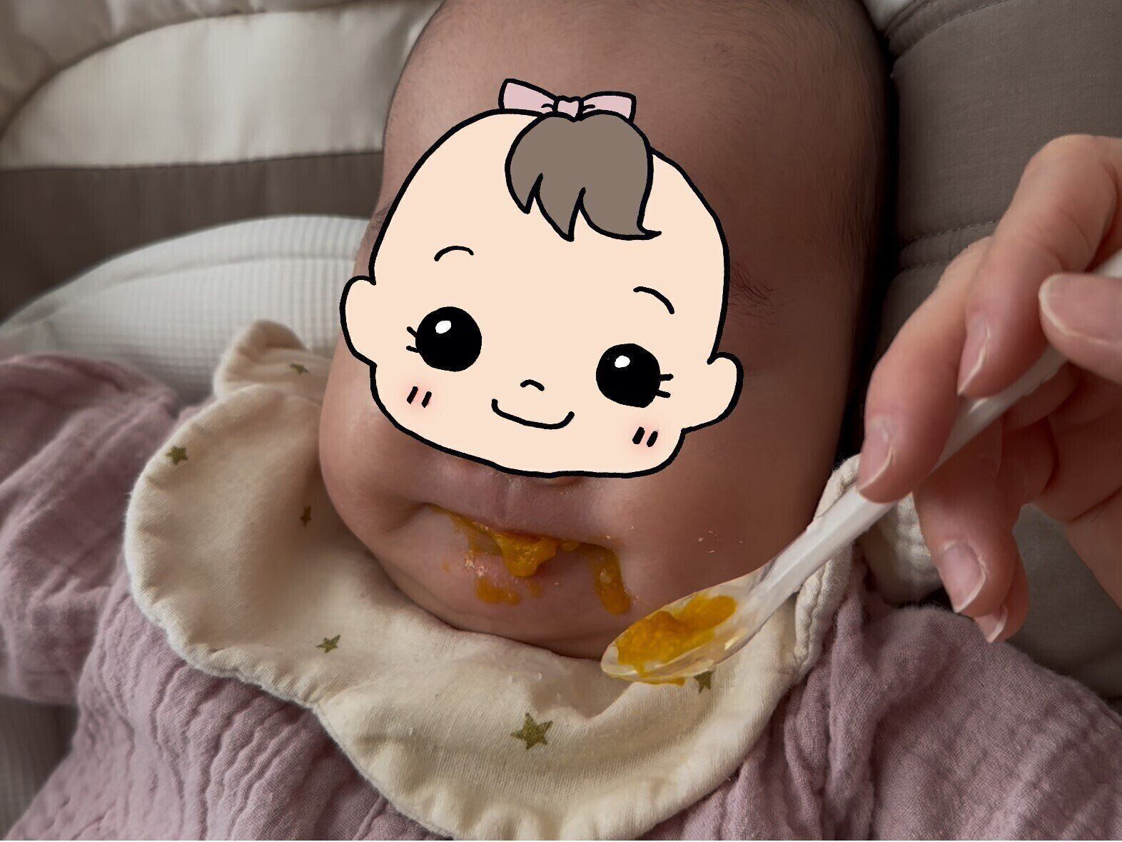 上3人はみんなどちらかというと食に前のめりだったのですが、4人目は割と初めてあげる食材に対して驚いているのか、べーっと出してしまうことも多く、子どもによりそれぞれ個性があるなと思います。
