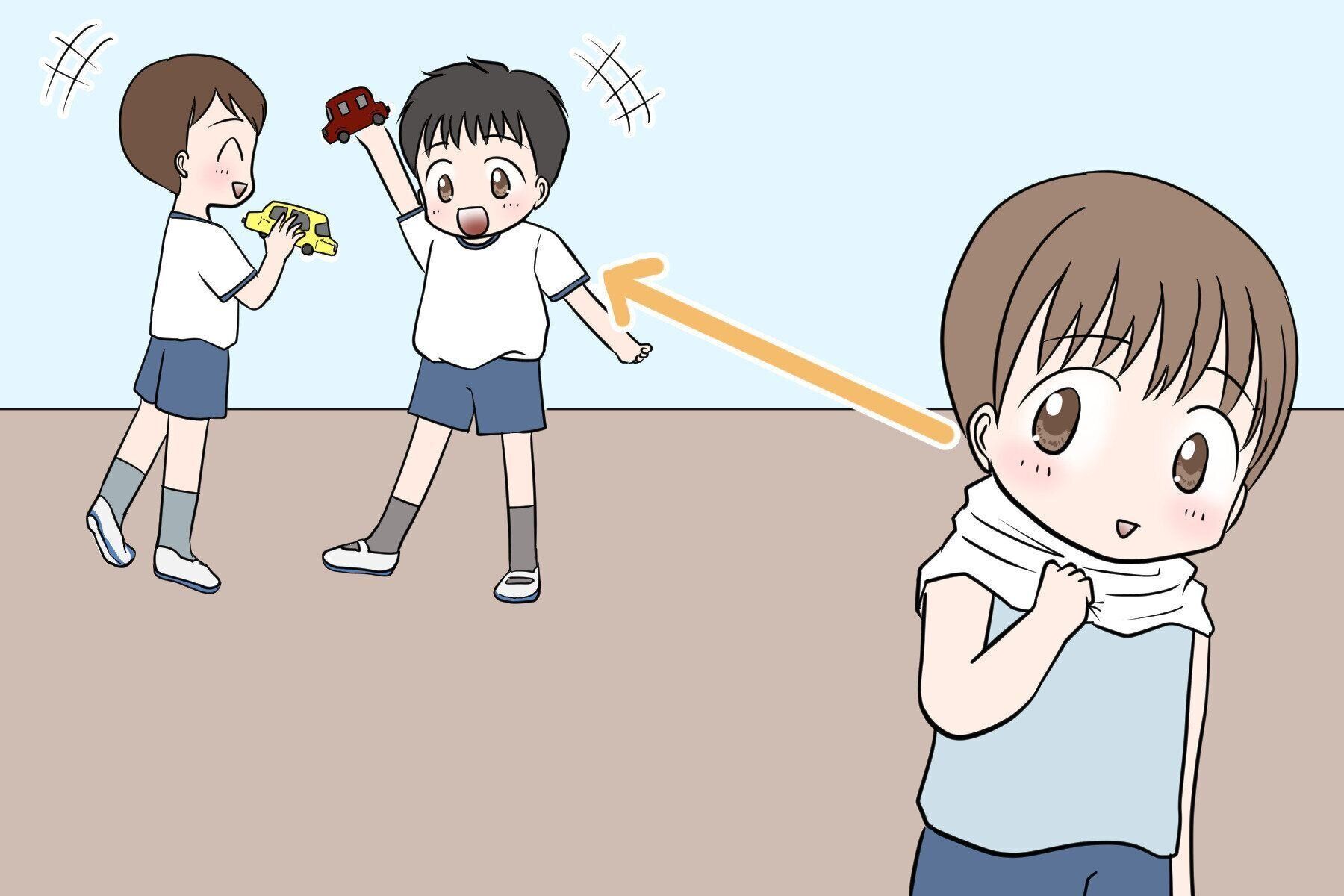 例えば幼稚園では、靴を履き替えている最中に掲示物のポスターが気になって靴を履く動作を忘れてポスターに夢中になってしまったり、体操服に着替える際にすでに着替え終わって遊んでいるお友だちが気になってそちらを見てしまい、着替えを忘れてお友だちのほうに行ってしまったり…。