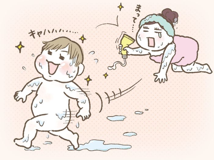子どもが歩くようになると、おふろの中でも出たあとも、なかなかじっとしていられないもの。ワンオペおふろでは、子どもの様子を気にかけながら高速で自分の髪や体を洗い、おふろ上がりも自分の着替えそっちのけで「まずは子ども!」ということも多いのでは? なるべく時間をかけず、ささっと子どもと自分のスキンケアをしたいですよね。