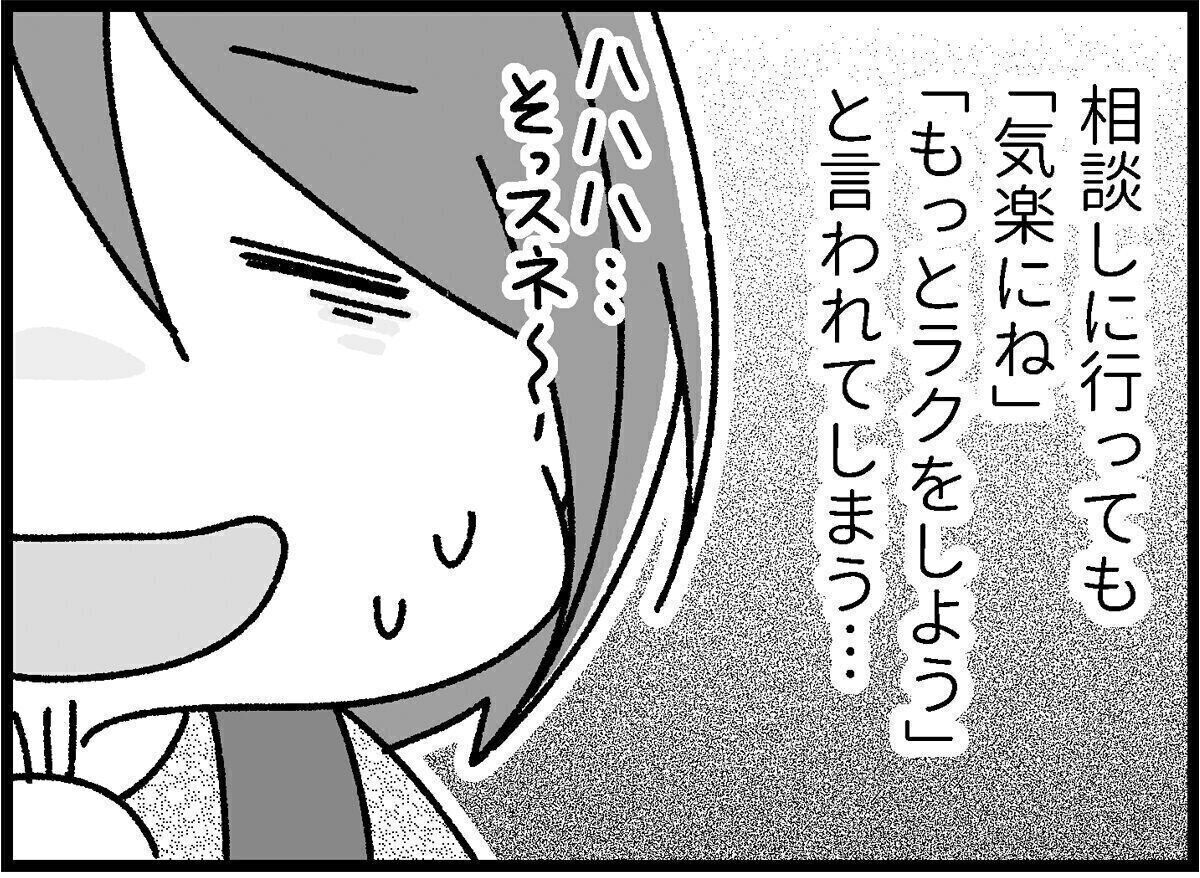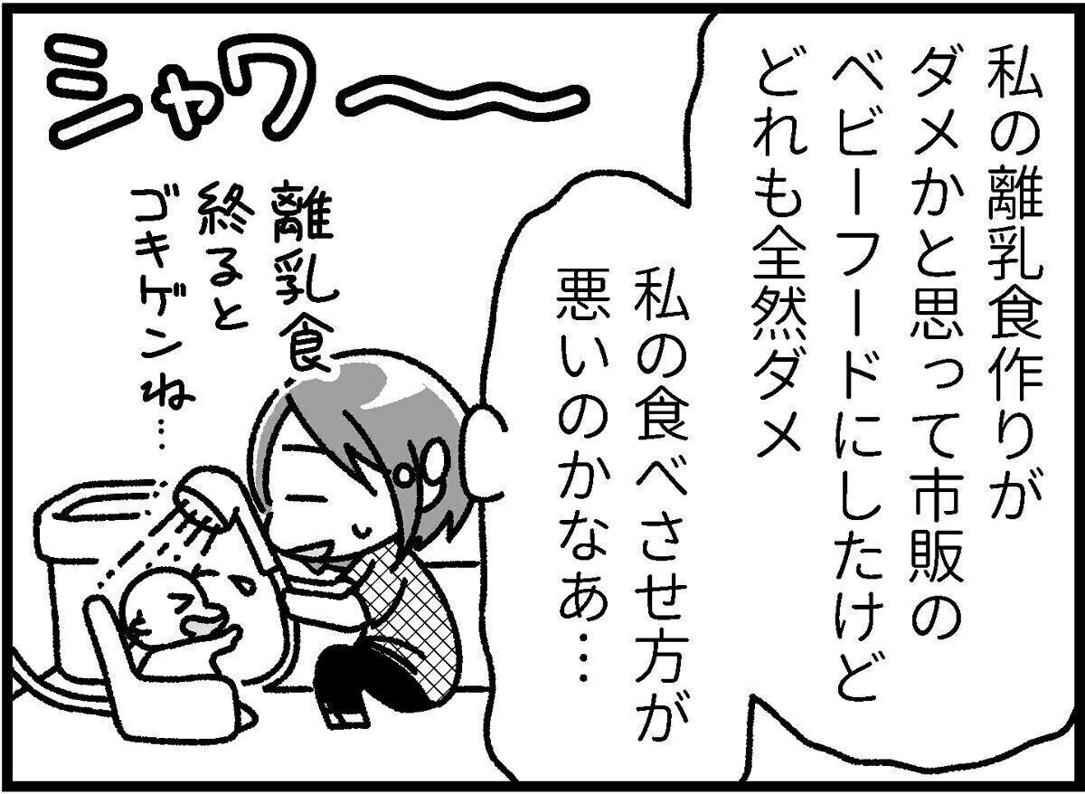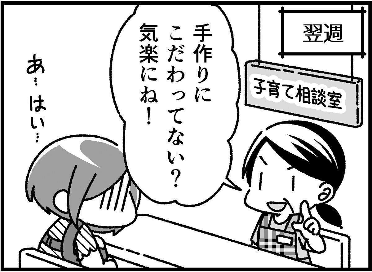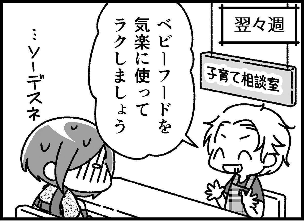 しかし、この時すでにベビーフードをガンガン使っていたし、肩の力を抜くといってもどう抜いていいのかわからず、笑顔であげているつもりだけど心配してしまうこと自体がもうダメなのかと思い、「つらい」と言えなくなり、相談できなくなってしまったんです。(続く)