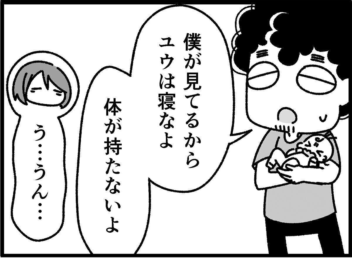 頻回授乳でコマ切れ睡眠のうえ、娘を起こさないよう気を張った生活を何カ月も続けていた私。それを見かねた夫が「交代で夜泣きの対応をしよう。今は僕が見ているから眠ったほうがいいよ」と言ってくれました