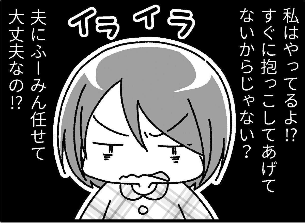 夫は、ふーみんのおむつやお腹の空き具合を確認した後、私ほどは相手をせず、安全を保ったうえで仕事をしていました。私は、その夫の姿を不満に思って、つい「泣かせないようにみててよ!」と怒ったんです。