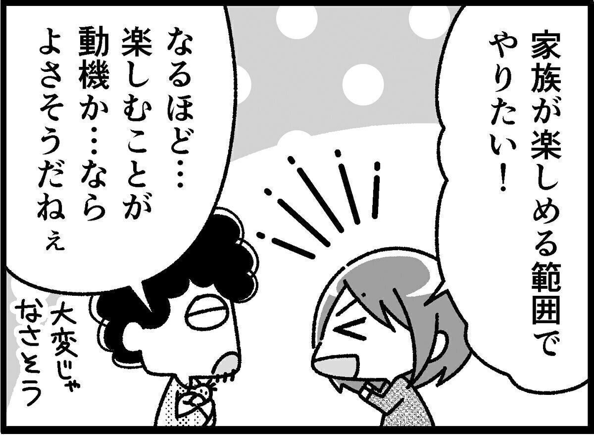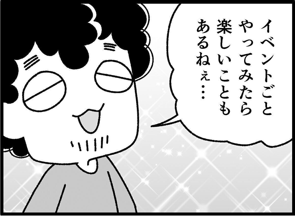 こうして、さまざまな行事を可能な範囲でやったり、無理だと思えばパスしたり、家族の状態に合わせて行ったところ、夫が「子どもの行事やイベントって、なんとなく無駄に疲れたり、疲れたせいで夫婦喧嘩が勃発したりするイメージがあったけど、楽しいものなんだね。意地悪な見方をしてごめん。これからも楽しんでいこう」と言ってくれたんです。