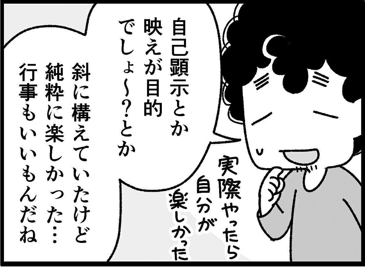 行事をやりたくない理由はたくさん考えつくのに、なぜ私はこだわっているのだろうか、そもそも行事とはイベントであり、イベントは楽しいもののはずなのに……と、そこまで思ったところでモヤモヤの正体に気がつきました。