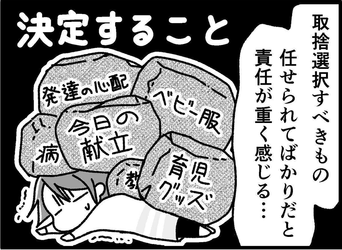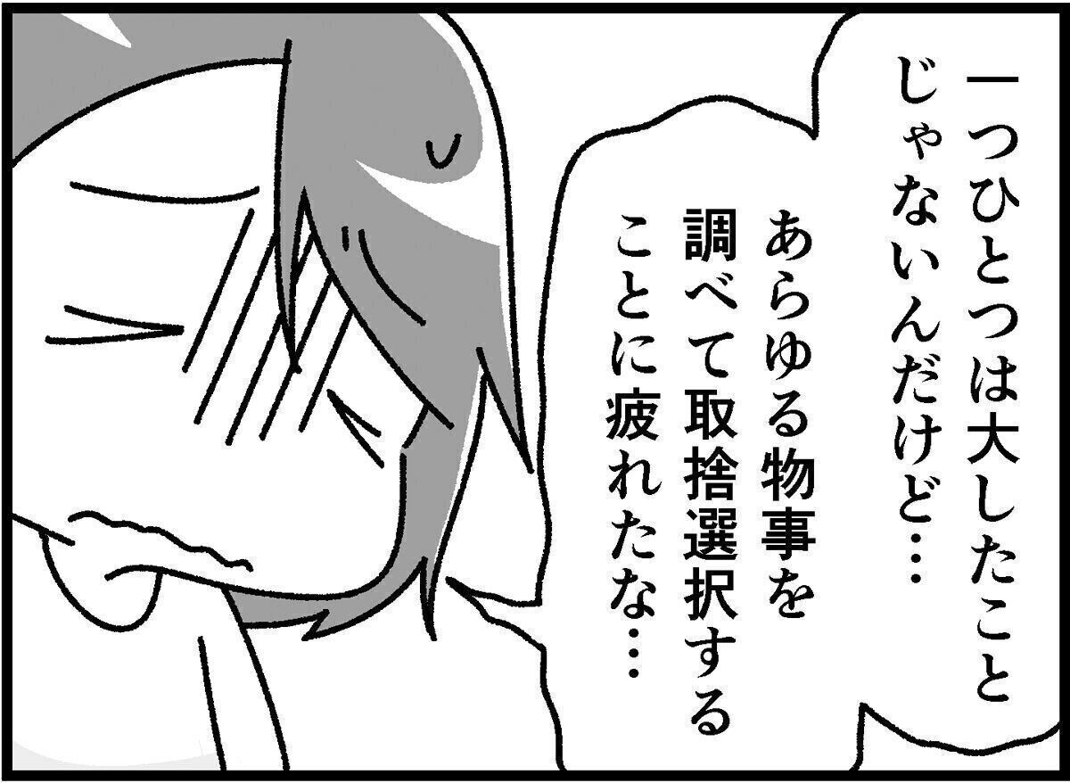 子育てにまつわるあらゆる情報を集めて比較検討し、選んだり決断したりする毎日に、私はどんどん疲れていってしまいました。一番つらかった時期には自分のおやつを選ぶのも嫌になり、コンビニに出かけたのに手ぶらで帰ったほど!