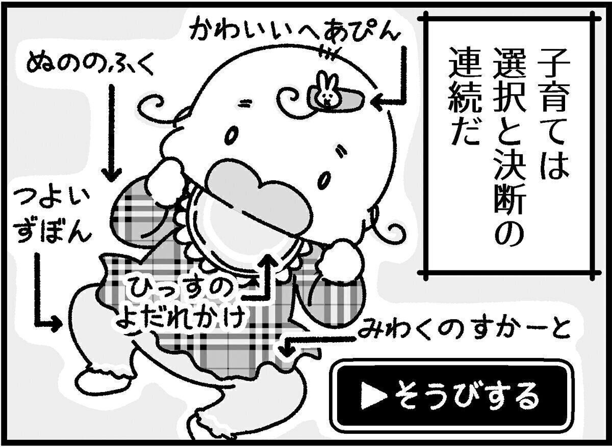 そうして、おむつや粉ミルク、洋服、絵本などの物品を選ぶ際も、どこへ遊びにいくかを選ぶ際も、育児方針を決める際も、あらゆる物事の決断の前にはリサーチ・比較検討・選択……といったことが必要になるわけです。さらに赤ちゃんは自分ではない他者なので(できる限り)赤ちゃんの好みや性格、家族全体のライフスタイルなども考慮して選ぶ必要があります。