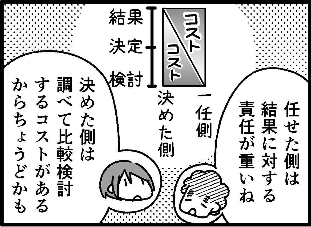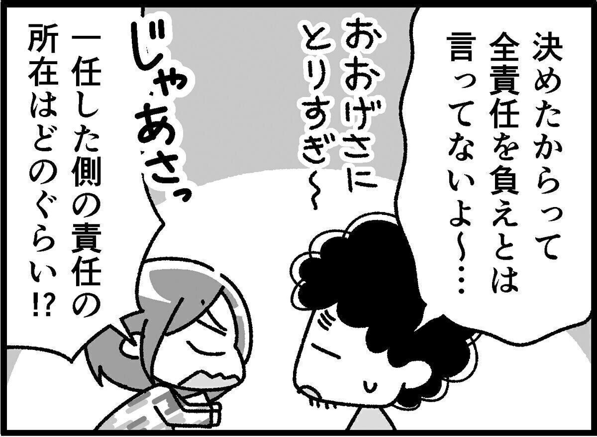 すると夫は「ユウが決めたからといって、全責任を負えと言ったつもりはないし、大げさに考えすぎだよ」と返してきたのです。確かに、私が勝手に気負い過ぎているせいかもしれません。ただ、責任の所在がはっきりしないからこそ、常に決める側が重責を負うことになると思ったので、夫と話し合うことに。