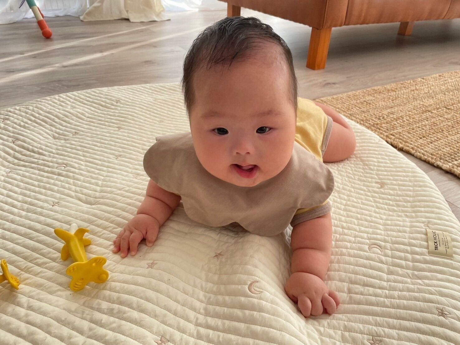 ダウン症がある創佑くんはゆっくり成長し、生後2カ月ごろから笑顔を見せるようになり、生後5カ月で寝返りをうてるようになりました。ところが生後6カ月を過ぎたある日、春花さんは創佑くんの異変に気がつきます。