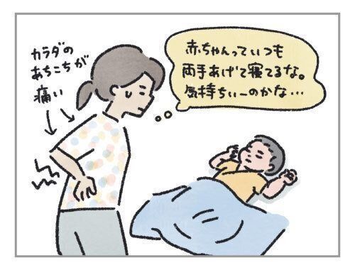 ある時、スヤスヤと寝ている子どもを見て、ふと「赤ちゃんっていつも両手をあげて寝てるなー・・・もしかして、それが気持ちいいのかな?」と思ったんです。