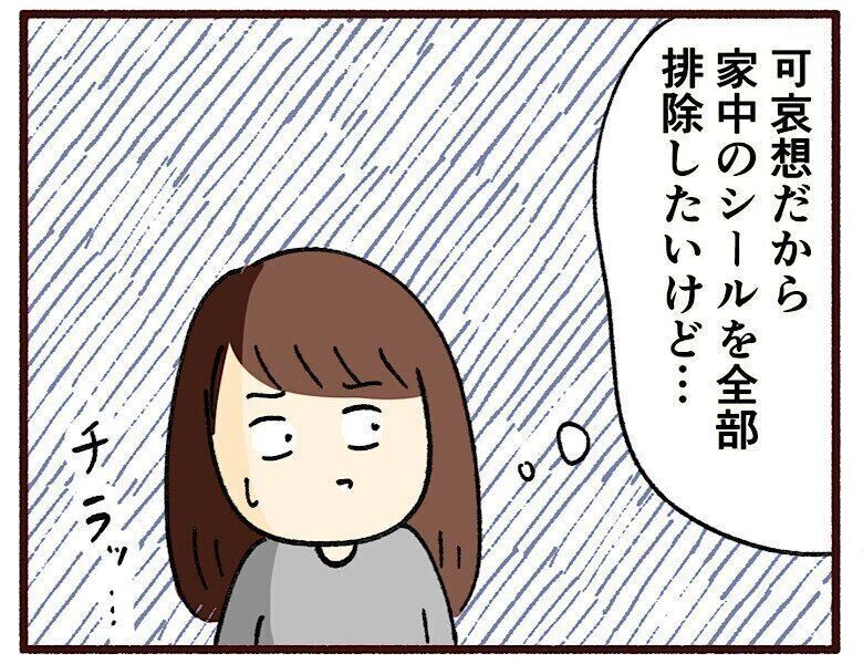 突然シール恐怖症になったひな。家中のシールを取り除こうとしたけど…