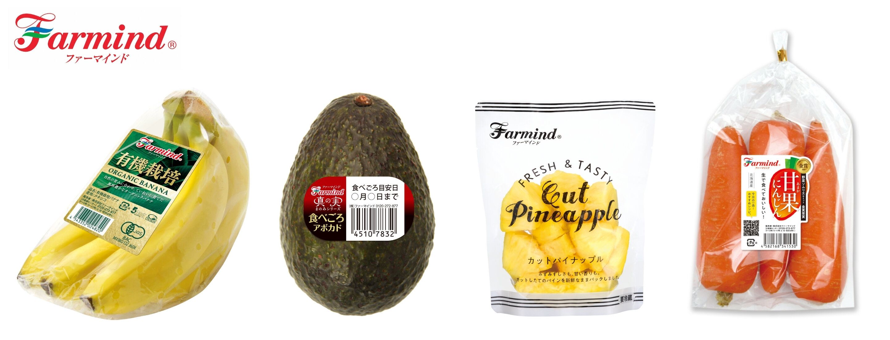 株式会社ファーマインドはバナナやアボカドなど海外から輸入した果物を追熟したり、食べやすいようカットフルーツに加工したりするほか、国産のにんじんや自社農園で育てるいちごなど、品質にこだわった果物・野菜を全国のスーパーなどで販売しています。