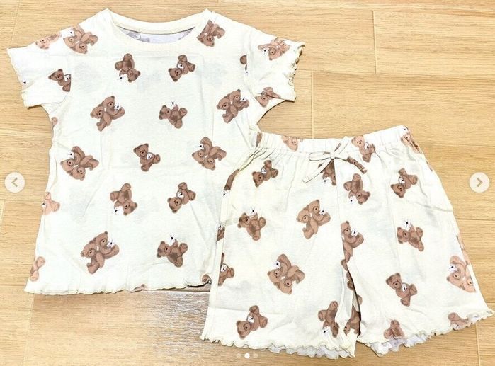 こまさんは、こちらのパジャマを購入。くまさんのプリントがとっても可愛らしく、思わずゲットしたとのこと。半袖&ハーフパンツと、夏場には涼しく着られそう♪ そでとズボンのメロウデザインもとってもキュートですね。