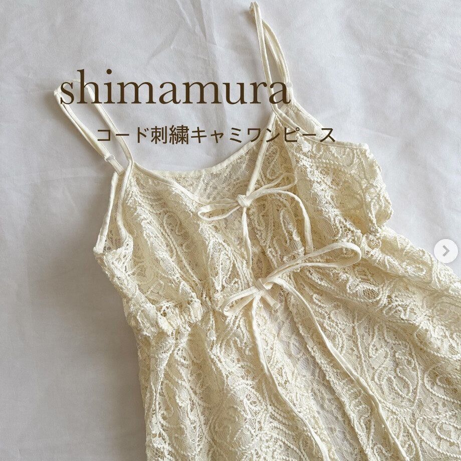 こちらはm12314sさんが発見した、コード刺しゅうキャミワンピース。胸もとまわりに付いたリボンを絞ると、違うシルエットを楽しめるんだとか♪ ワンピース、パンツ、スカートなどと合わせると、可愛いんだそうです◎