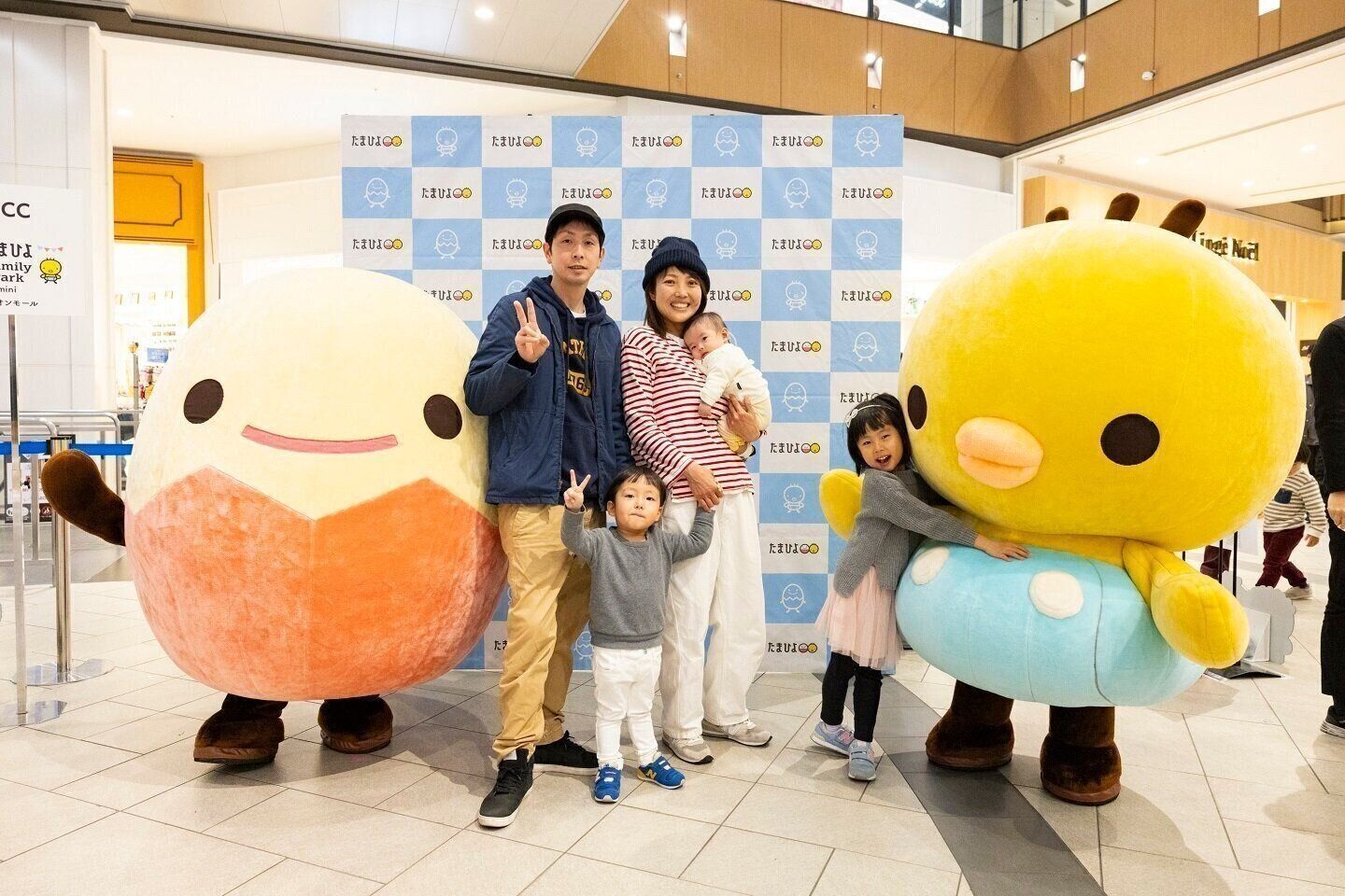 たまちゃんとひよちゃんと一緒に、ファミリーで写真を撮りませんか? 来場の記念になること間違いなし!