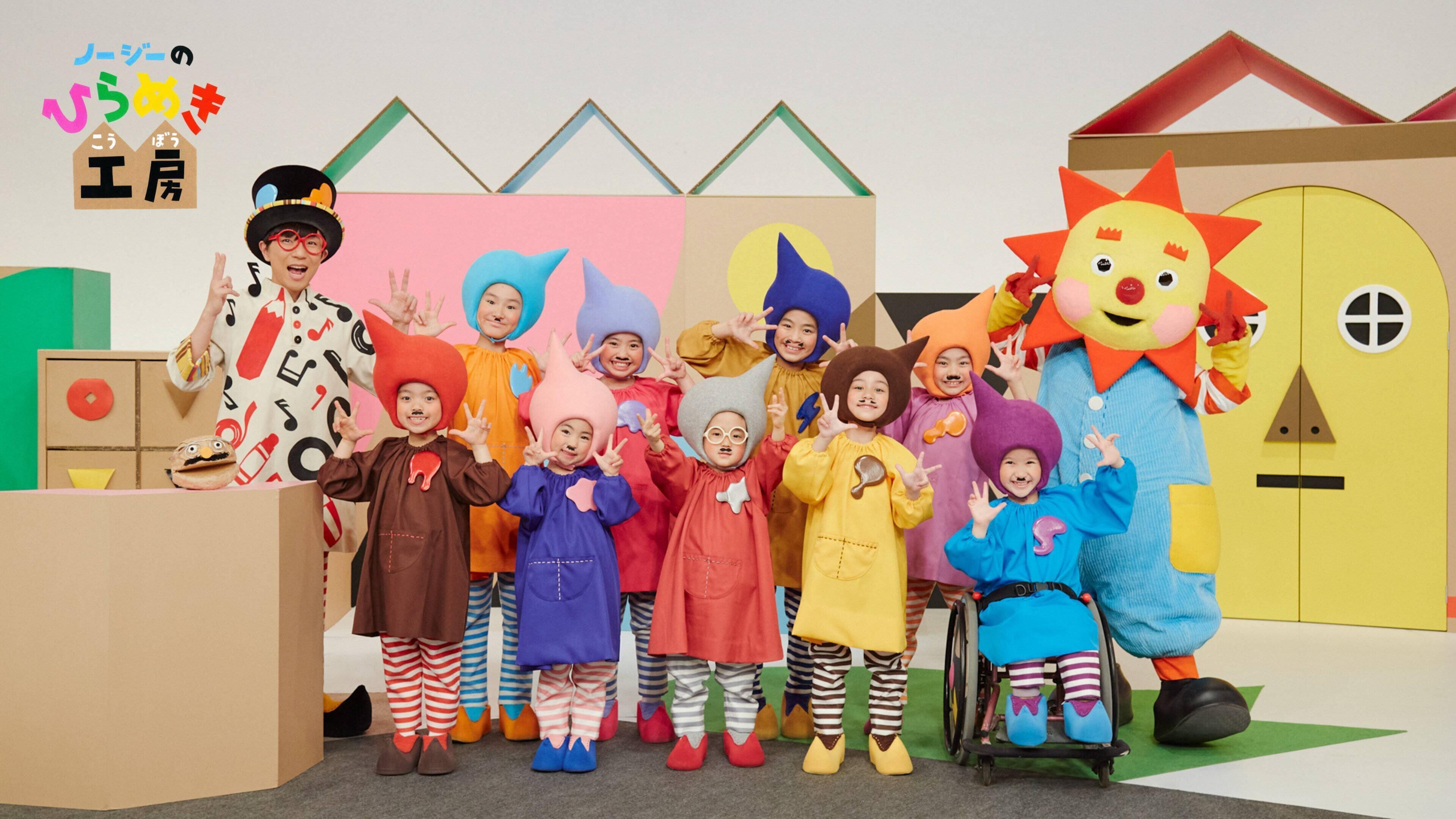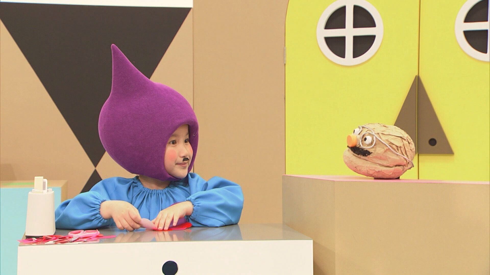 4~5歳からの子どもたちに向けた、NHK Eテレの工作・造形あそびの番組。シナプーは「ひらめき工房」に遊びに来る妖精たちで、ノージーと一緒に工作をして遊びます。宮原紬ちゃんはシナプーの1人として出演しています。(写真提供/NHK)