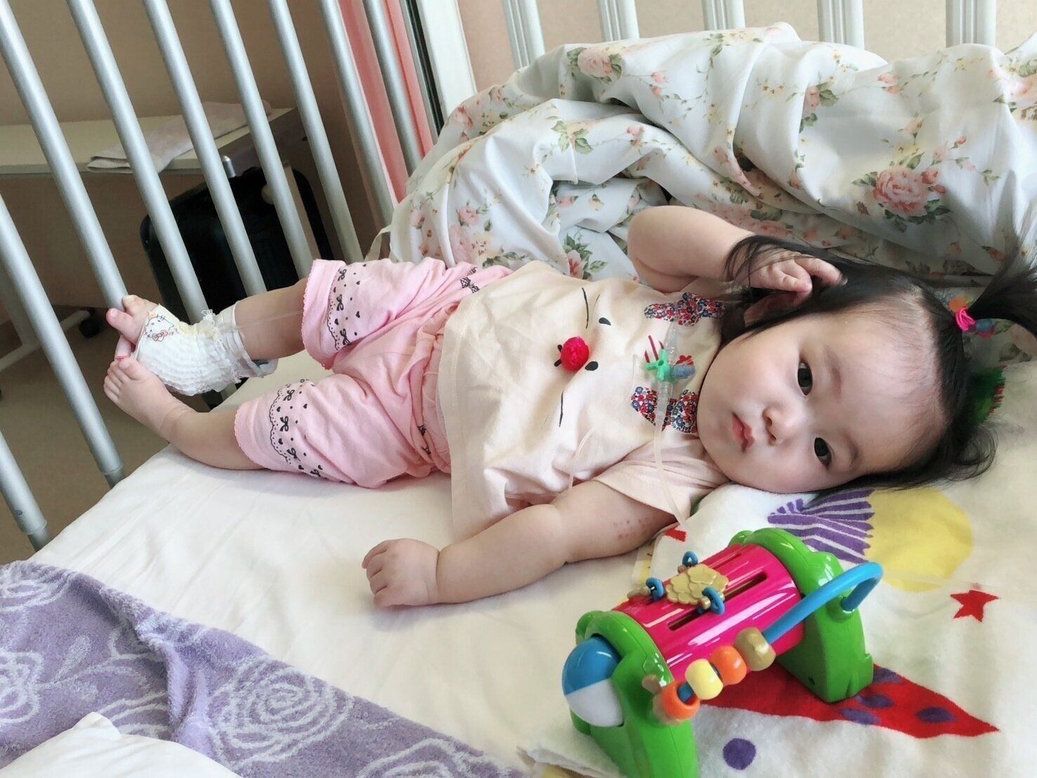 生後7カ月のころ、けいれんで救急搬送され検査入院した仁菜ちゃん。
