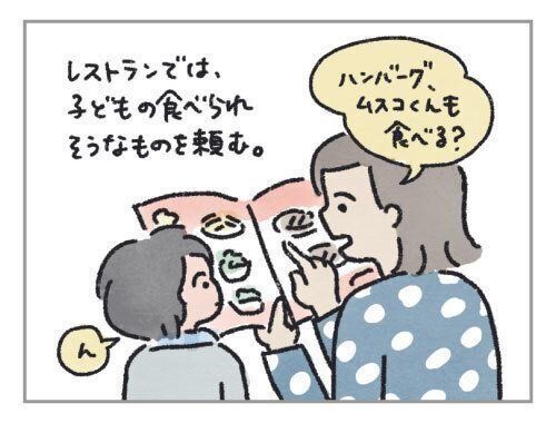 レストランでは、自分の頼むものも、子どもが食べられそうなメニューにするようになりました。取り分けで食べる時はもちろん、お子様ランチを頼む時でさえ、自分のものを子どもが欲しがってしまう可能性を考えて頼みます。だって、なんでもいいから、栄養のあるものをあげたいのです。私、親鳥かな?と思います。