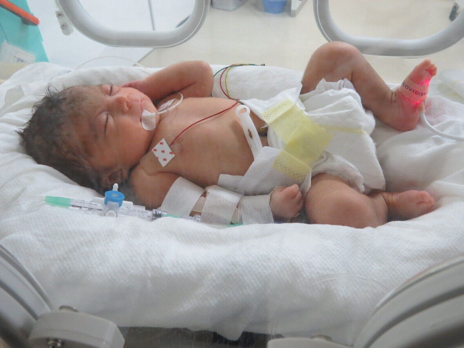 「低体重のため呼吸が安定していないと、医師から説明がありました。その上、右手小指の位置が通常より下にある奇形だとも。出産したのは産科クリニックだったので、明愛はNICUのある市民病院に救急搬送されました。
