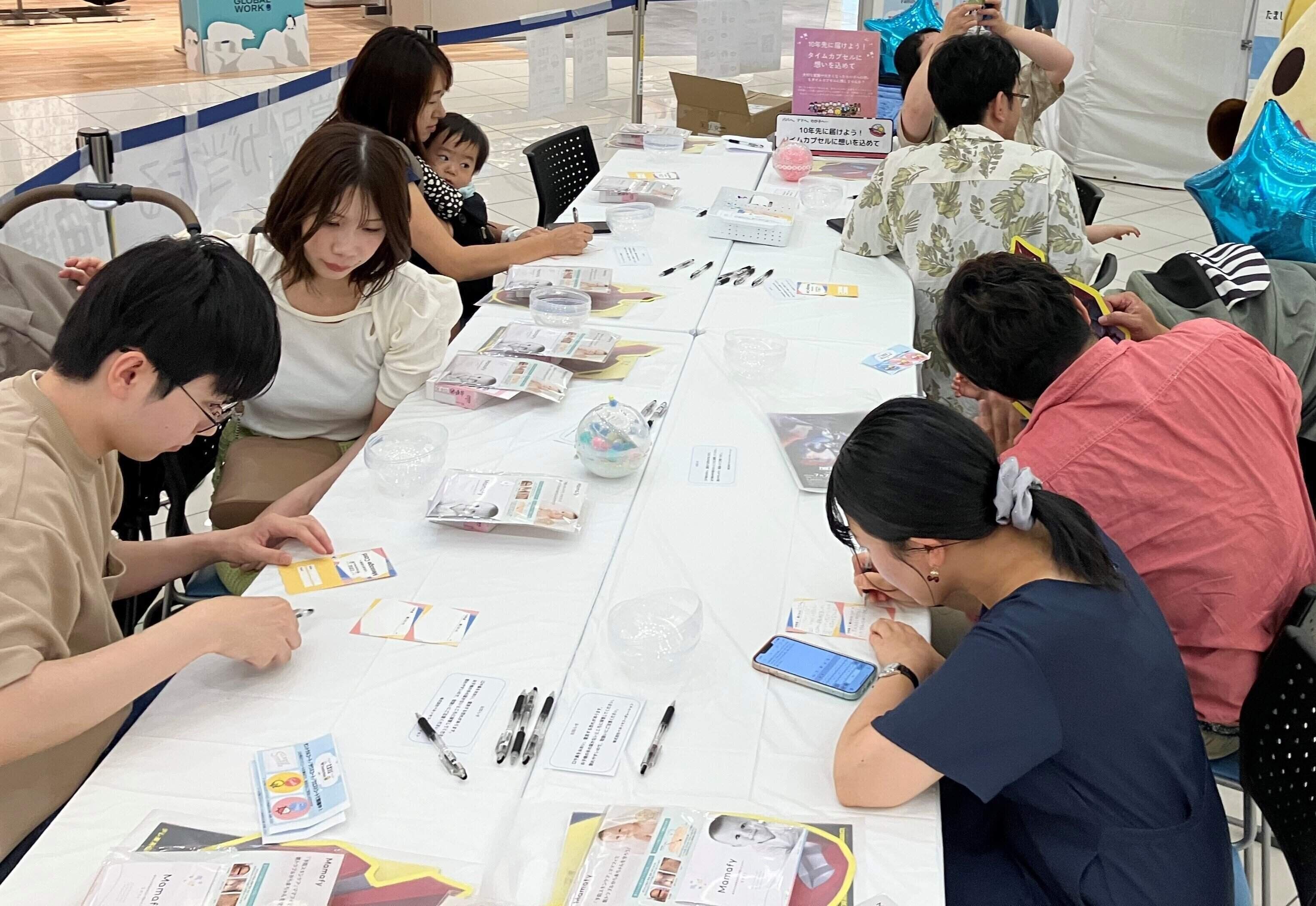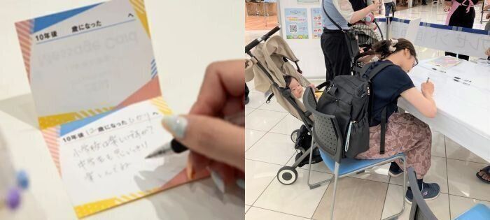10年後の家族に向けたメッセージカード入りタイムカプセルを作れるコーナーでは、家族やお子さんの10年後に想いを馳せながら、カードを記入している姿が多く見られて、家族への思いの深さを垣間見ることができました。