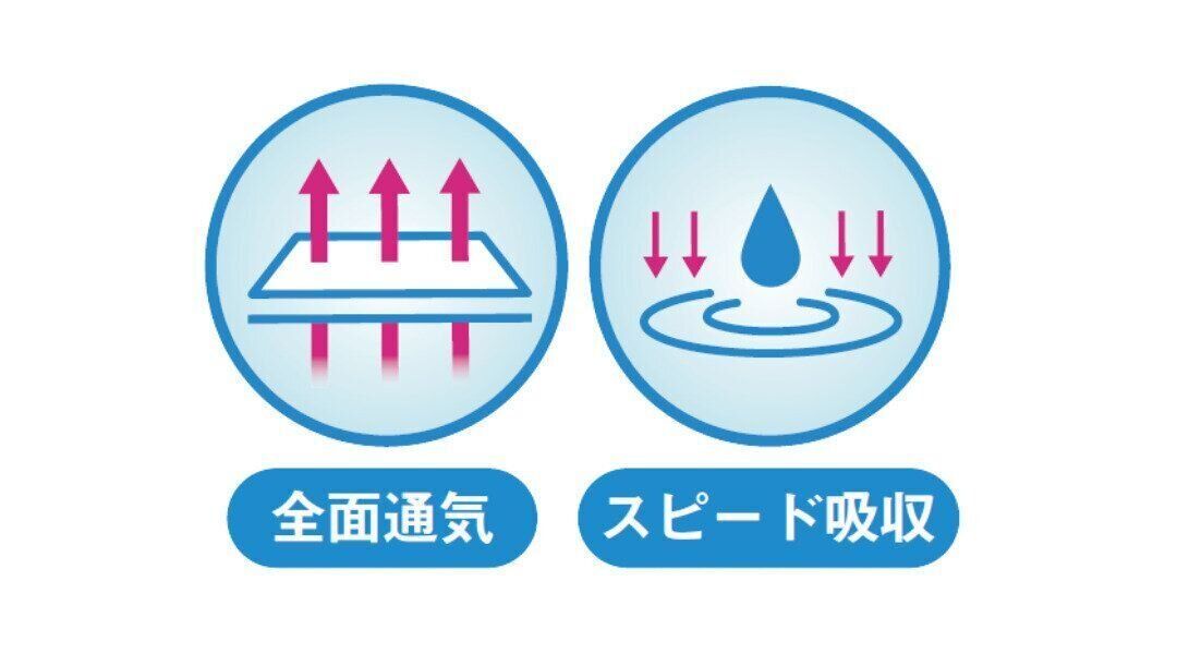 吸収スピードが速く通気性がいいので、長時間はいていてもむれにくい! いつでもお肌がサラサラです。