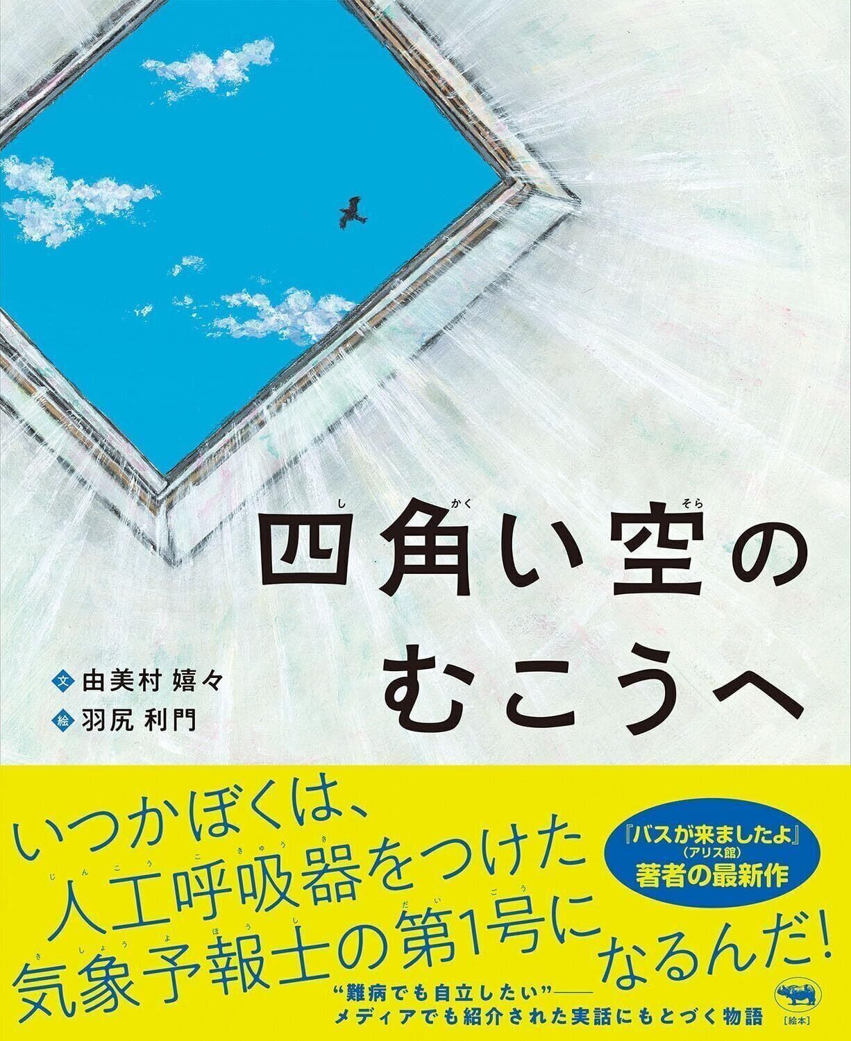 人工呼吸器をつけ車いすで生活する少年が、気象予報士になる夢を追う姿を描いた実話に基づくフィクション。モデルの中学生の男の子があきらさん。作家・編集者の由美村嬉々さんがおおたさんファミリーに出会ったことで生まれた物語。由美村嬉々・文、羽尻利門・絵/1760円(晶文社)