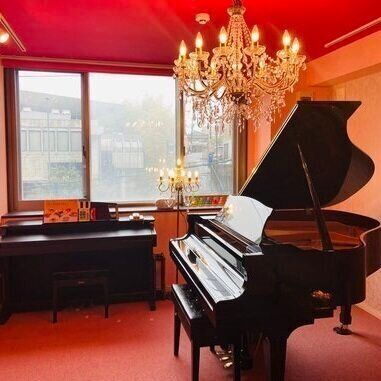 2022年、ピアノ教室の法人化に伴い、新規開校した教室。新しい教室にもシャンデリアを採用し、夢の国のようなキラキラ空間に。現在、生徒は100人以上。花崎さんの志を同じくする3人の講師も加わりました。