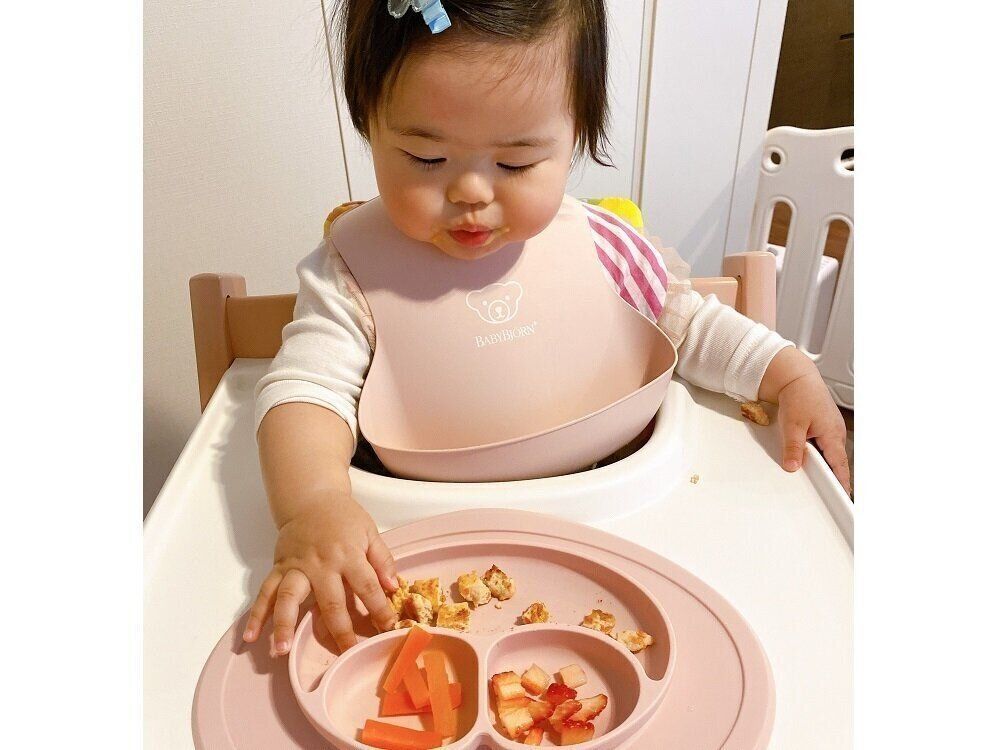 娘は離乳食を食べることは大好きだったので、食べられる食材を増やしつつ、1歳3カ月で歯が生えるまでは、もぐもぐ期ぐらいのかたさ(舌と上あごでラクにつぶせる絹ごし豆腐ぐらいのかたさ)を目安にして、離乳食を作っていました。