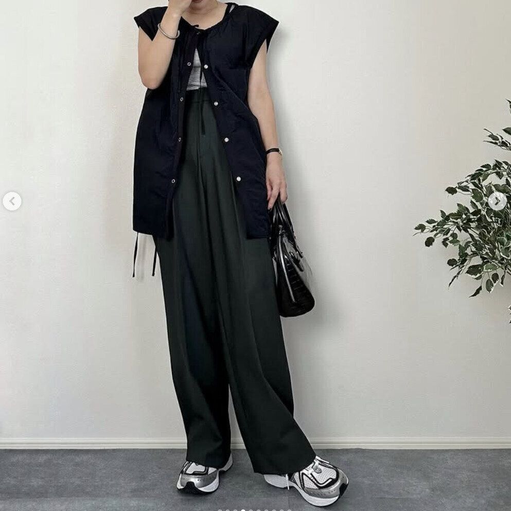 erinさんは「ウルトラストレッチアクティブワイドパンツ」を購入。接触冷感機能付きで、サラッとしたはき心地が快適です。ウエスト部分がゴムなのでラクにはけるのも◎。ストンと落ち感のあるきれいめシルエットなので、トップスにカジュアルアイテムを合わせても、洗練された雰囲気に仕上がります。コーデをきれいめに寄せたいなら、ローファーやバレエシューズとの組み合わせもおすすめです♪