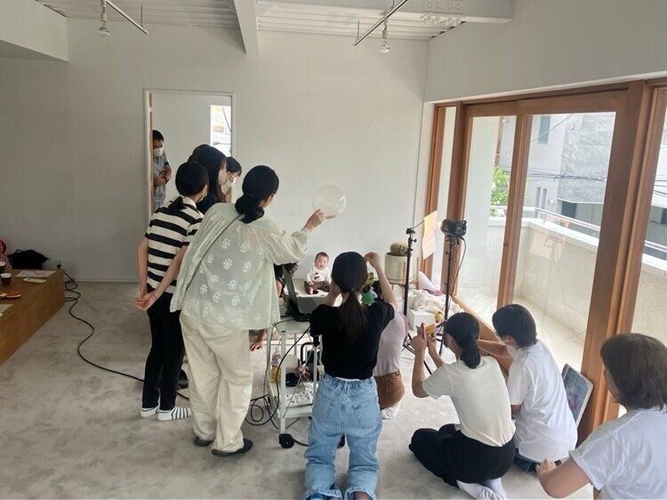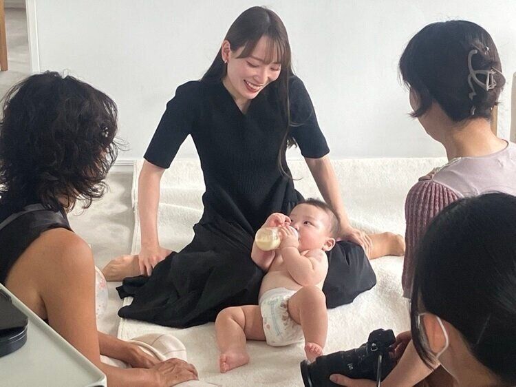 名前を呼んだり歌を歌ったりして、赤ちゃんの笑顔を引き出すよう、撮影現場を盛り上げました。
