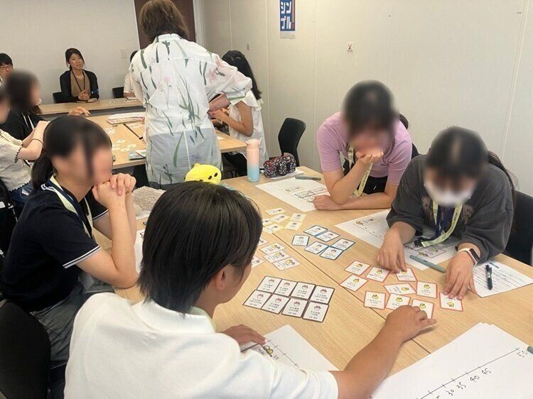 ▲「移住し農業を始める」「子だくさん家族になる」「子どもは持たない」など、偶然引いた「ライフプラン」を自分の人生に起きると仮定して、何歳でその出来事が起きるか想像してみるゲーム。考えたことのない人生の選択肢に大盛り上がり!