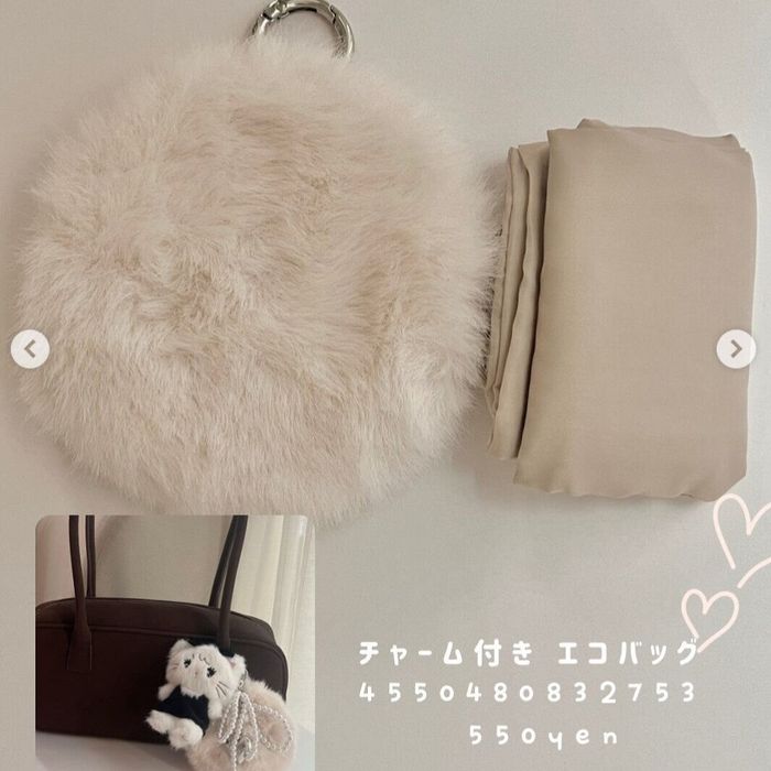 ____mii.17さんが購入したのは、ダイソー×TGCのチャーム付きエコバッグ。ファー素材の円形ポーチと、無地のシンプルなエコバッグがセットになっているようです。550円商品のようですが、小さいバッグのときにも便利でとてもいい商品と大絶賛の様子◎