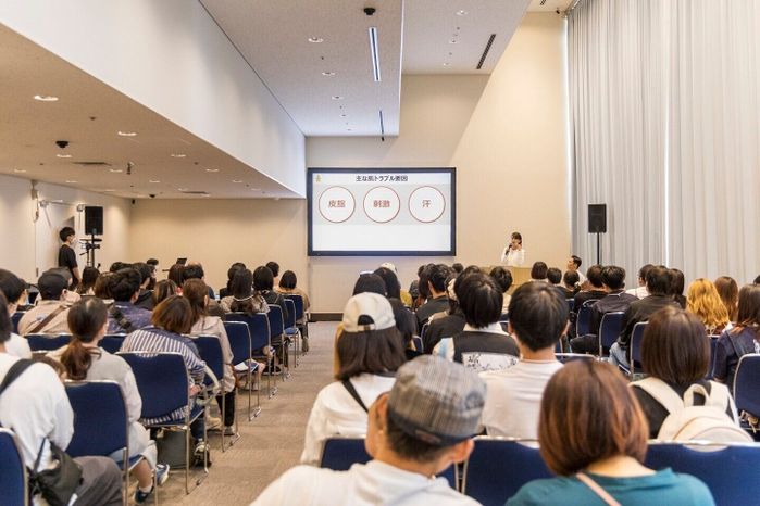 入浴後のスキンケアを学ぶセミナーは立ち見が出るほど大盛況