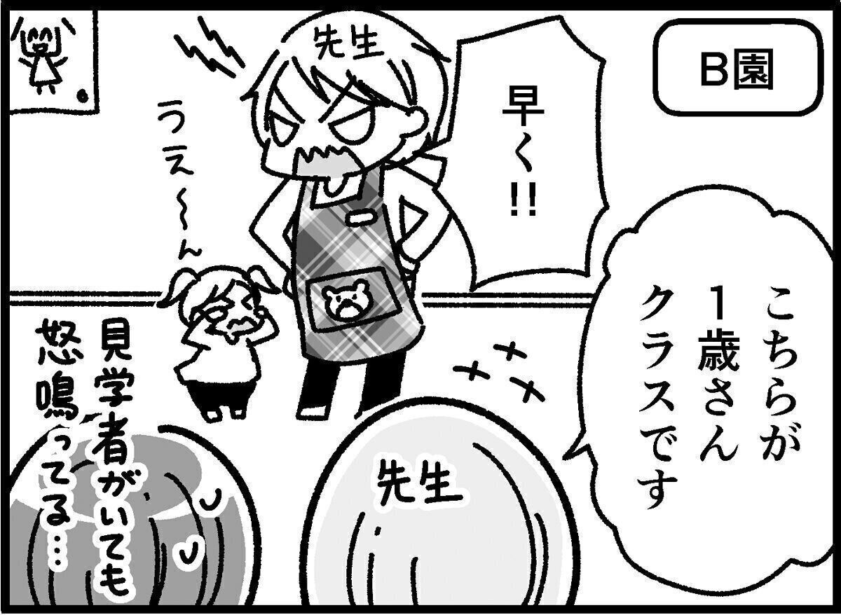 その他、保護者が見学に来ているときでさえ、先生が0歳児や1歳児を怒鳴っている園もありました。見学者がいても怒鳴るということは、日常的にそういう保育をしているんだろうということが容易に想像できます。また家庭の教育方針にもよりますが、早期教育に熱心すぎて子供が大変そうな園もありました。