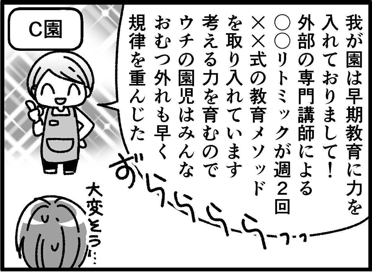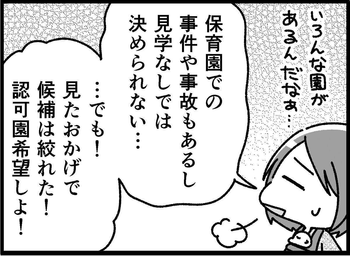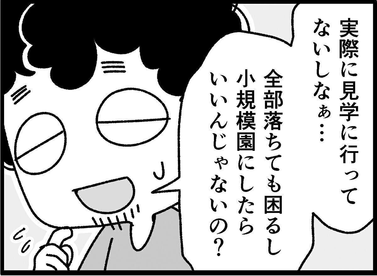 ただ、たった数時間見ただけの園に対し「ここが我が子に合う」「安全な園だ」と確信は持てません。夫に聞いても「僕は見てないからなんとも言えないよ」と、まったくあてにならず。同じ親なのに、どうして他人事なのかと激怒してしまいました。
