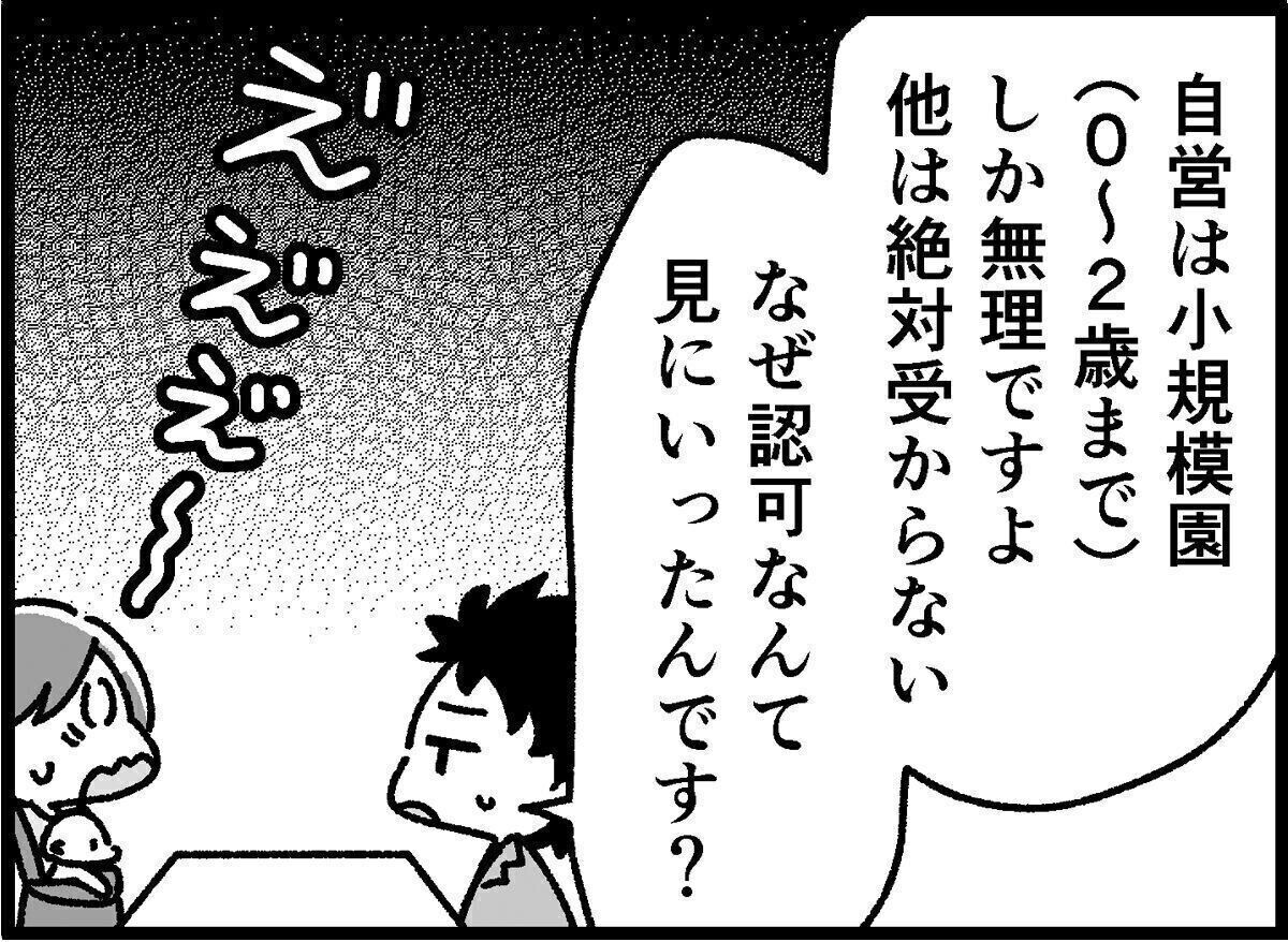 私が見学したなかでは、やはり認可保育所に広くてきれいなところが多く、うちの近くの小規模園は2歳までだったので再び保活をしなければならないこともあり、認可に申し込みたいと思いました。ところが、役所の保育課では「自営業だと認可は無理」と言われてしまったのです。