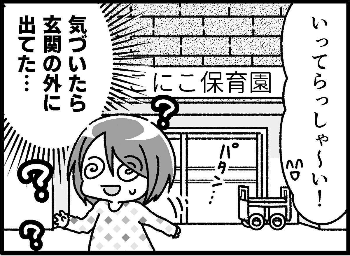 登園後にやることを一気に覚えなくてはならず、しかも他の親子も続々と登園するので、早く準備して退散しなければ玄関が詰まってしまう状況。半ばパニックになる私。それでも、なんとか朝の準備を終え、気づいたら保育園の玄関の外にいました。「ふーみんと離れるのがつらい〜」と感傷に浸る時間はありませんでした(笑)。