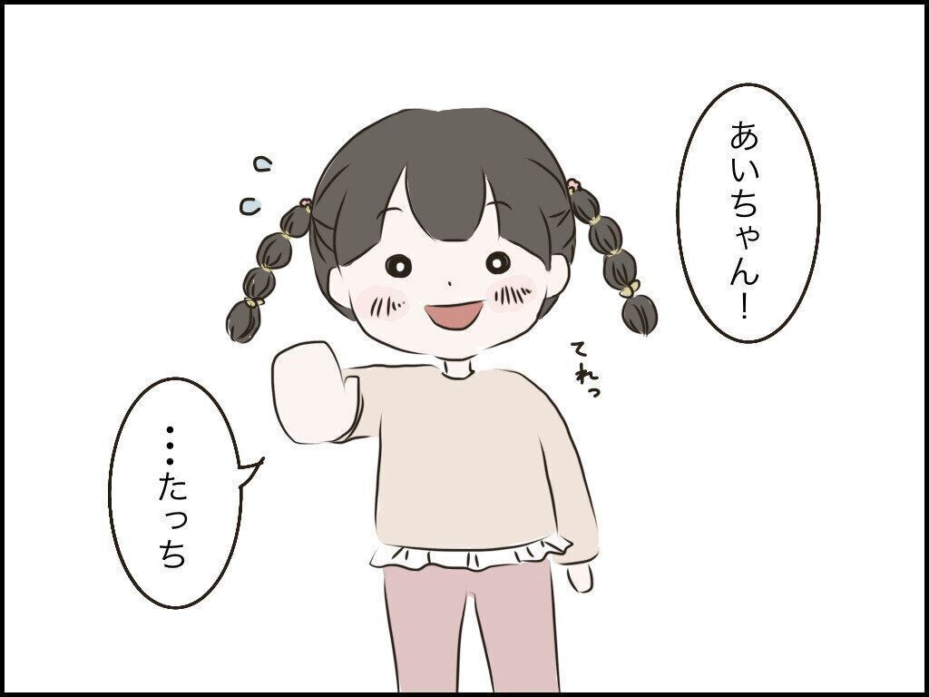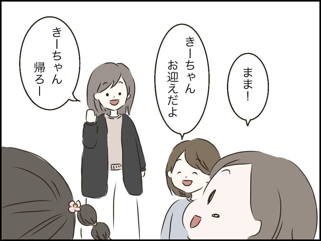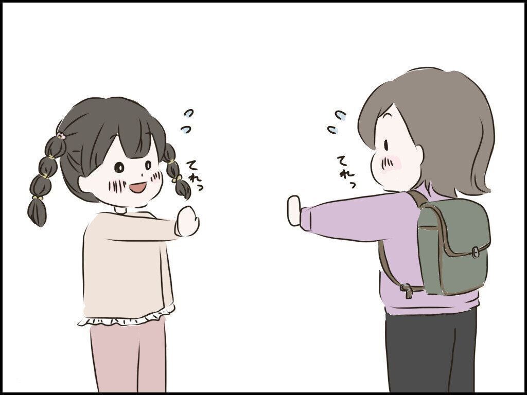 帰ろうとしているきーちゃんに照れながらタッチを求めてくれるあいちゃん。