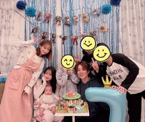 幸空くん7歳のお誕生日パーティでの家族写真。(杉浦太陽さんInstagramより)