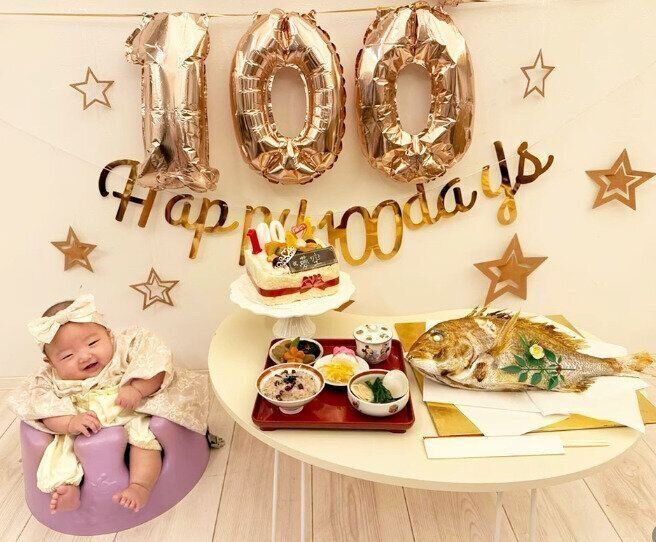 鯛は杉浦さん、ほかの料理は辻さんが用意して、100日をお祝いしました。(杉浦太陽さんInstagramより)