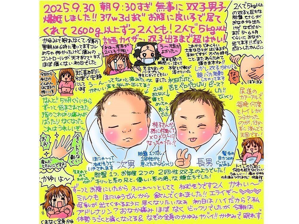 ――2025年9月30日に双子を出産されたときのことを聞かせてください。