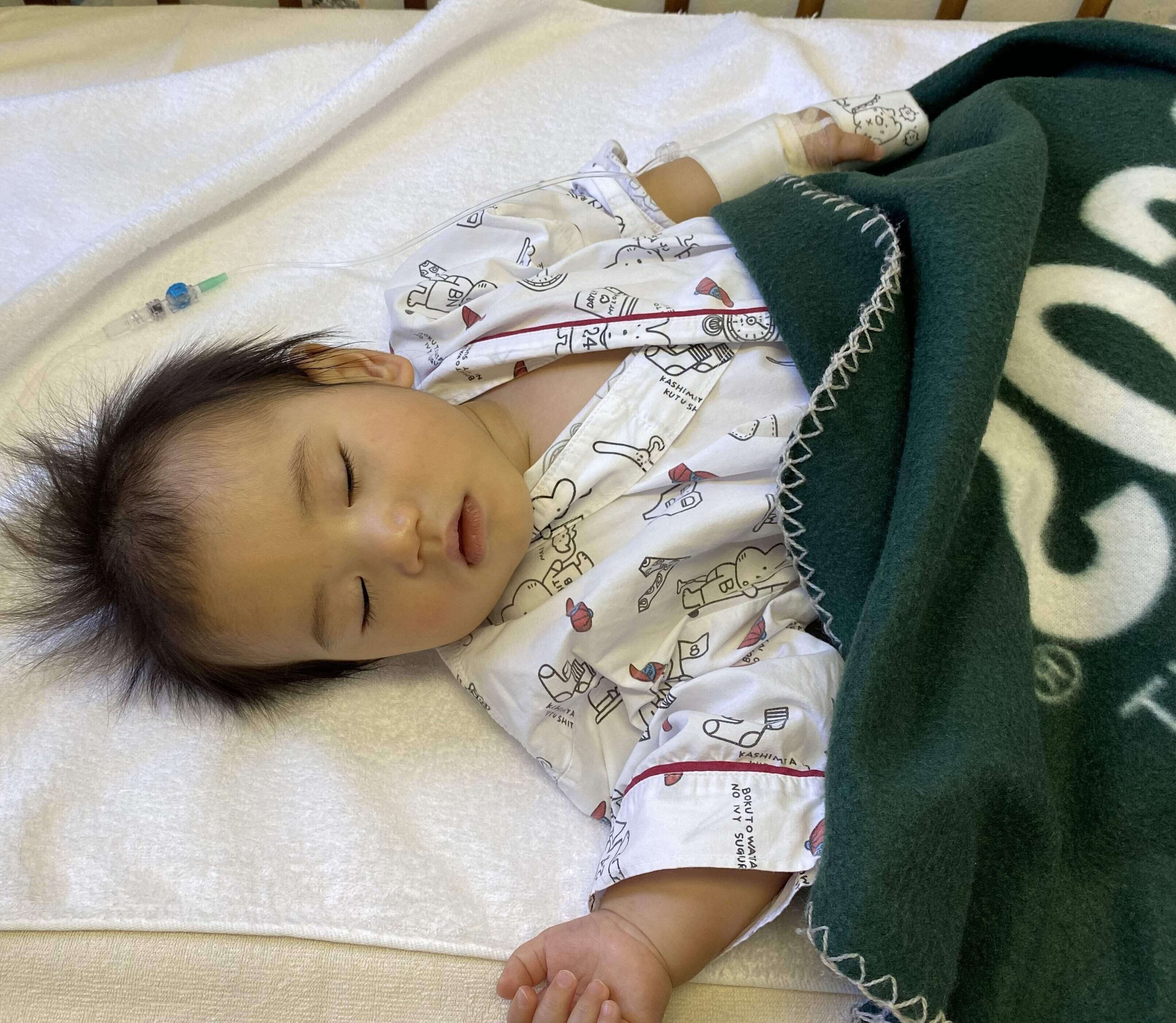 「体重2924g、身長49.0㎝のごくごく一般的な赤ちゃんでした。母乳の飲みも悪くなく元気でしたが、黄疸の数値が悪くて光線治療を受けました。退院後も再度数値が悪化し、生後1カ月ごろ再度入院となりました。