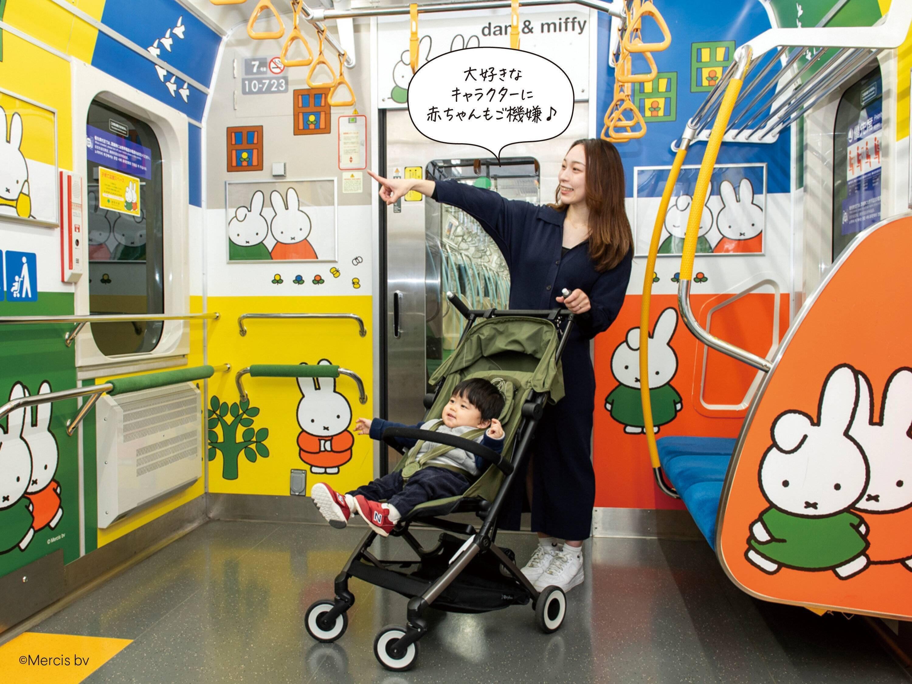 「親子でのお出かけが楽しくなる!」と話題の、都営地下鉄の「子育て応援スペース」。都営地下鉄4路線の指定車両に、『ミッフィーとダーン』をはじめとした人気キャラクターのイラストがラッピングされています。赤ちゃんはもちろん、親世代もウキウキする空間で、移動時間が楽しくなること間違いなし!